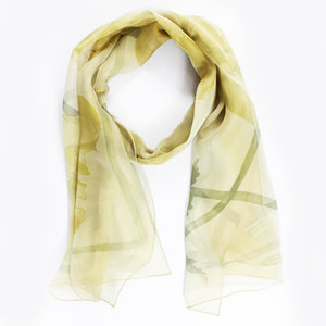 - SALE - Authentic Salvatore Ferragamo scarf with hues of chartreuse green and gray floral design, chiffon silk, hand stitched edges, made in Italy. Genuine Italian designer scarves, Salvatore Ferragamo shawl at outlet prices.