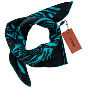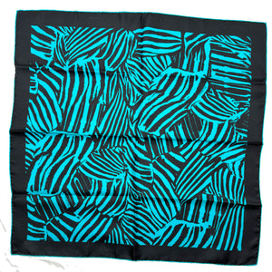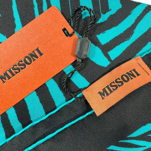 Authentic Missoni scarf, aqua black design, silk, hand stitched borders, made in Italy. Genuine Missoni women scarves at outlet prices, quality brand name shawls, made in Italy. This small scarf is also a great as accessory for your handbag.