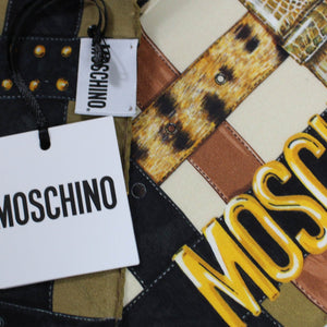 Genuine Moschino scarf, white black red belts design with the signature gold 'Moschino Teddy Bear' and 'MOSCHINO' detail, crepe silk, made in Italy. Great accessory for your handbag or wear on your wrist! Authentic Moschino scarves, women collection at outlet prices.