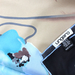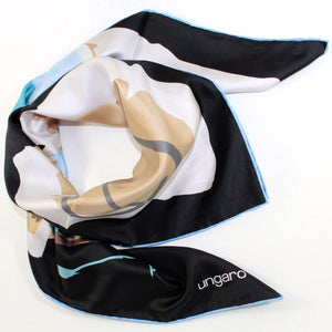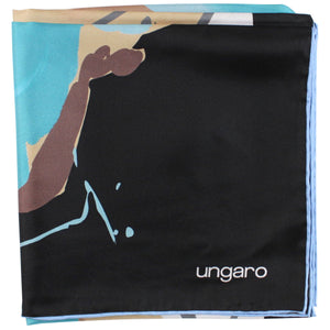 - SALE - Authentic Ungaro scarf with black / brown / aqua floral print, women collection, twill silk fabrics, hand stitched border, made in Italy. Genuine Ungaro women collection online, discount women designer scarves/ shawls at outlet prices.
