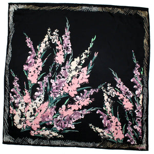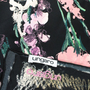 - SALE - Authentic Ungaro scarf with black / pink / green abstract floral print, women collection, twill silk fabrics, hand stitched border, made in Italy. Genuine Ungaro women collection online, discount women designer scarves/ shawls at outlet prices.