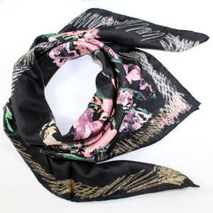 Category: 100-150, 2023fall, black, floral, green, large square, pink, scarf, silk, square, twill, ungaro, woman