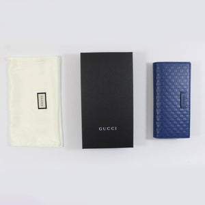 New: Authentic Gucci wallet, signature tonal GG (Double G) pattern, blue leather design, large wallet, 12 card slots and space for papers, made in Italy. Authentic Gucci women collection at outlet prices. Shop all luxury Gucci wallets and scarves.