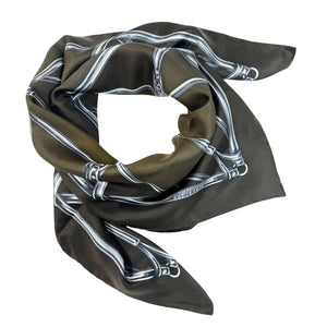 Genuine Gucci scarf, olive/ dark forest green design, twill silk, large square scarf, hand stitched borders, made in Italy. Gucci women collection scarves, shawls and wraps at outlet prices.
