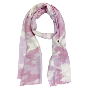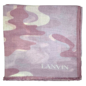 Genuine Lanvin scarf, pink camouflage design, soft cashmere modal blend, short eyelash fringe, made in Italy. Authentic Lanvin scarves, women collection accessories at outlet prices.
