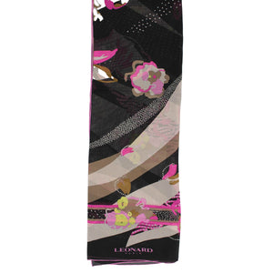 Authentic Leonard scarf, black/ pink/ cream floral,chiffon silk shawl, made in Italy, hand-stitched edges. Genuine Leonard Paris women scarf, stylish, stunning colors. Discount women designer scarves at outlet prices, luxury designer shawls and scarves.