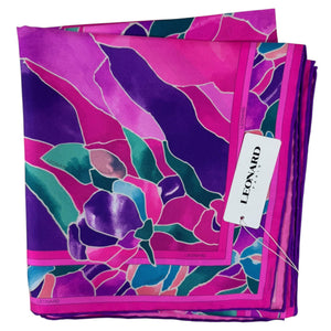 Authentic Leonard Paris scarf, abstract floral design, twill silk, hand rolled borders, made in Italy. Genuine Leonard Paris women scarves, stunning colors, top quality.