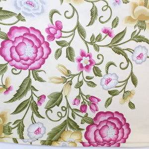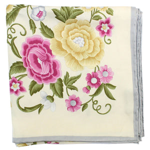 Authentic Loewe scarf, cream / pink / gray floral, gray border, large twill silk large square scarf, hand stitched borders, made in Italy. Discount luxury women designer scarves at outlet prices: shop Loewe scarves.