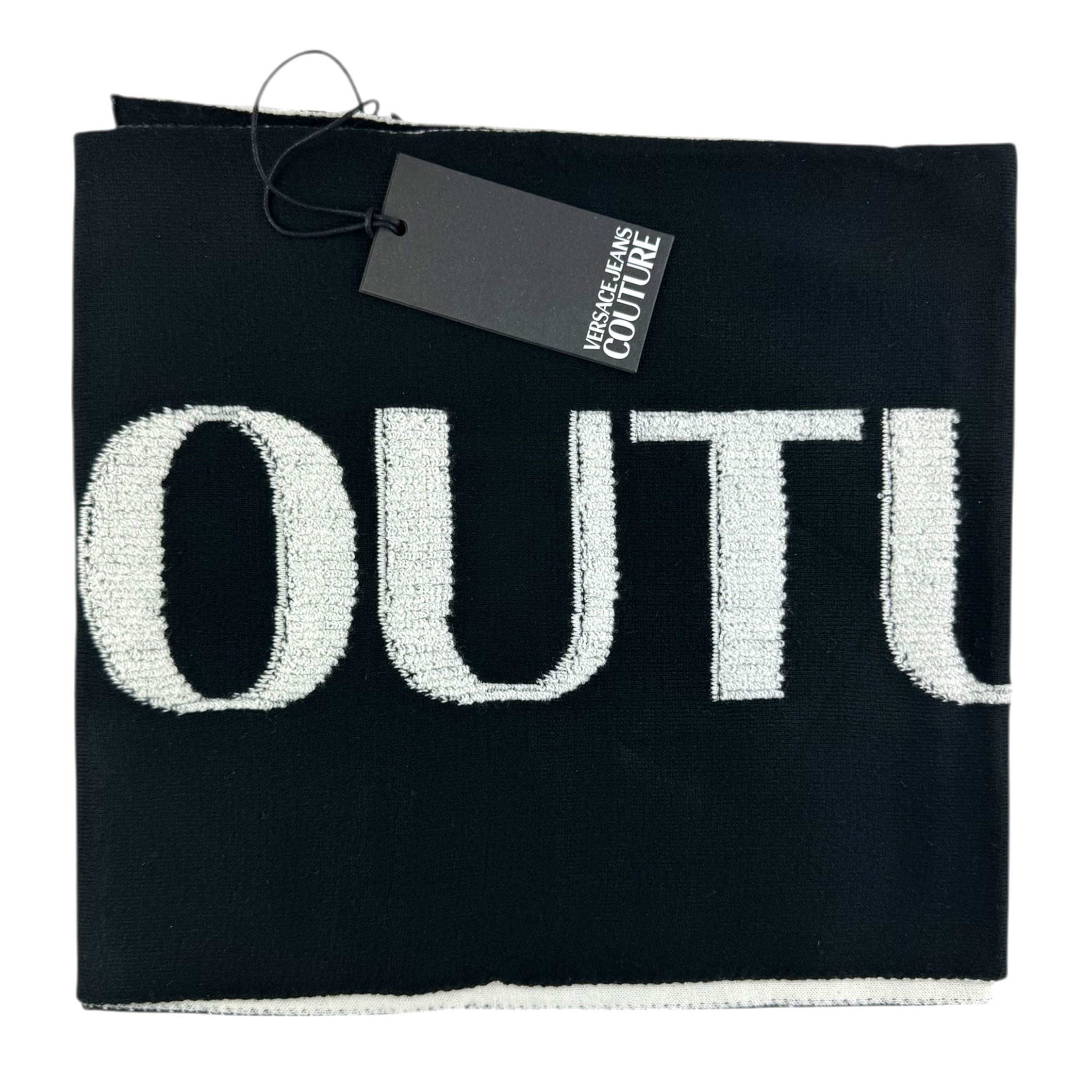 Unisex collection: Authentic Versace scarf, black white 'Teddy Stripe Logo Yarn' , Versace Jeans Couture design, no fringe, medium weight fall/ winter blend, Versace Jeans Couture collection, imported. Versace collection - women scarves at outlet prices.
