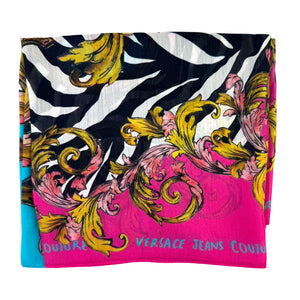 Category: 100-150, 2026spring, animal print, aqua, baroque, hot pink, large square, ornamental, scarf, silk, square, Versace, woman, wool