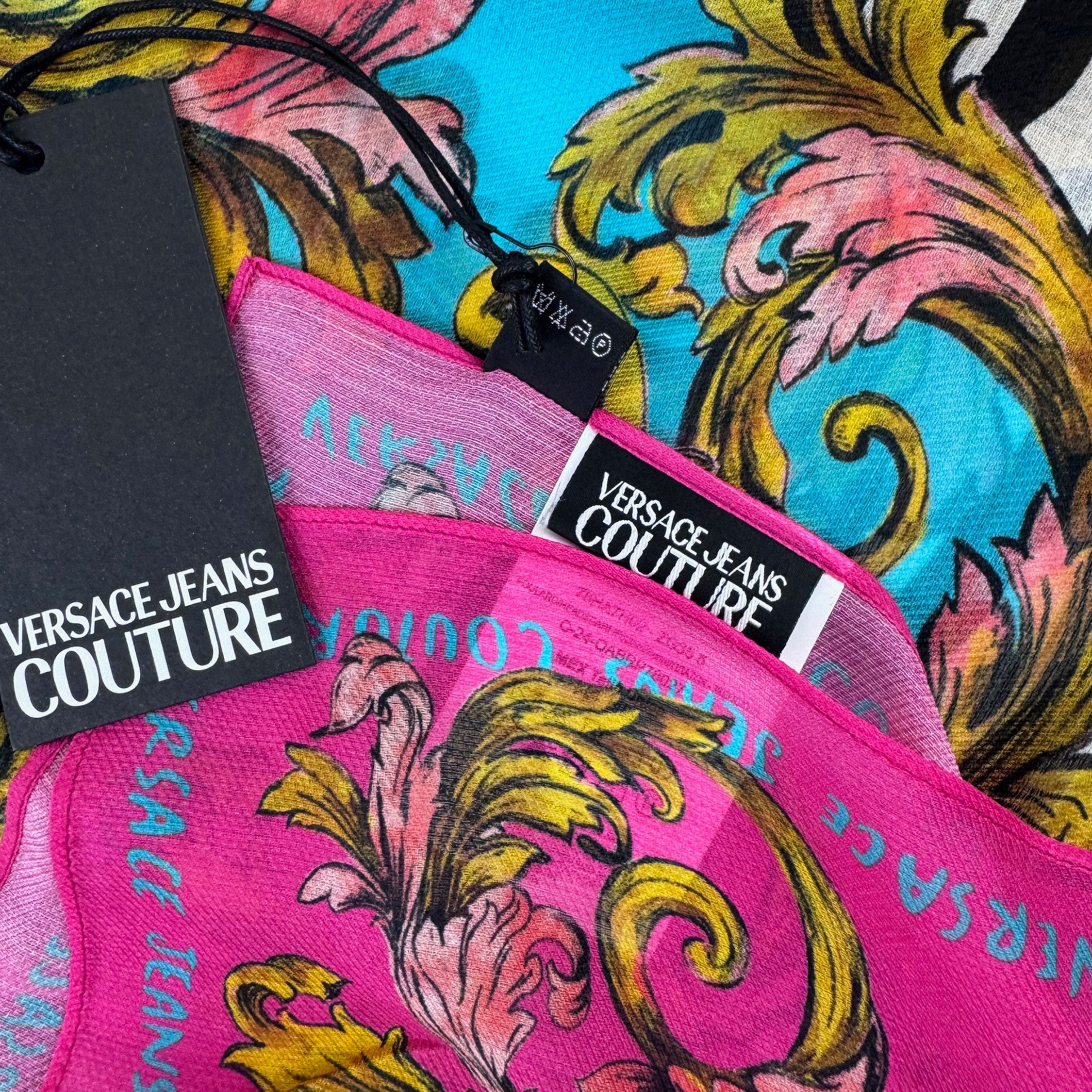 Versace Jeans Couture represents the bold, youthful artery of Versace — a diffusion line that channels the House’s flamboyant DNA into ready-to-wear pieces designed for modern streetwear and trend-conscious wardrobes and scarves.