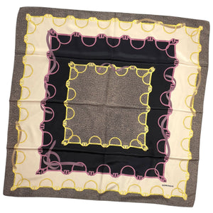 Genuine Borbonese scarf, Eye of Partridge & Gold Pink Chain design, light weight twill silk, hand stitched borders, made in Italy. Authentic Borbonese women designer scarves, Italian women accessories at outlet prices.