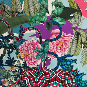 Category: 150-200, 2025spring, christian lacroix, floral, green, large square, original print, scarf, silk, sky blue, square, twill, woman