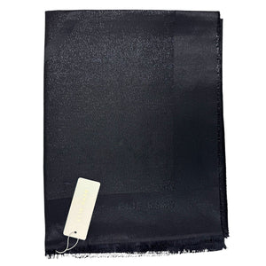 Authentic Elie Saab scarf, black with silver glitter design,wool/ silk, hand stitched borders, made in Italy. Genuine Elie Saab collection, discount women designer scarves/ stola and shawls.