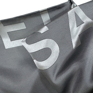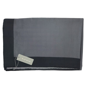 Genuine Elie Saab scarf, gray with center logo, extra large 55" square wrap, twill silk, hand stitched borders, made in Italy, hand stitched edges. Genuine Elie Saab collection, discount women designer scarves at outlet prices.
