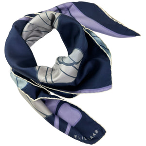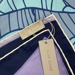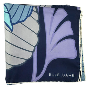 Elie Saab Scarf Navy Lilac Gray Floral - Twill Silk Square Foulard