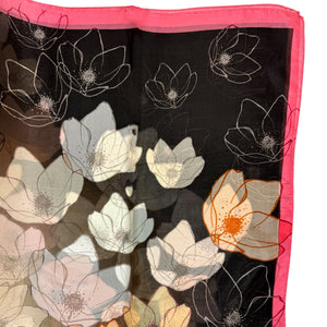 Great price! Authentic Furla scarf, pink/ black floral design, light weight silk, hand stitched borders, made in Italy. Genuine Furla women designer scarves, Italian quality accessories at outlet prices.