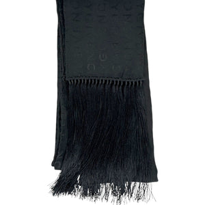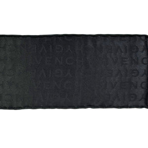 Genuine Givenchy scarf, solid black tonal Givenchy logo allover, satin silk with long fringe, skinny shawl, made in Italy. Authentic Givenchy women collection online at outlet prices. Latest Givenchy designs at huge discounts, shop now: Givenchy scarves.