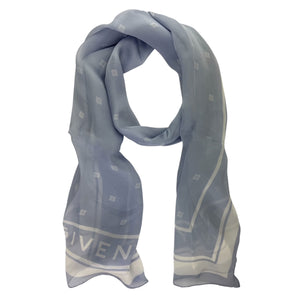 Category: 200-300, animal print, blue, Givenchy, lilac, logo, scarf, shawl, signature, silk, woman