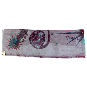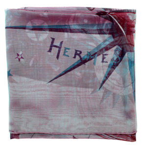 Very exclusive: Genuine Hermes scarf, violet fuchsia and a little turquoise, 'Quintessence' design, extra large (lightweight) chiffon silk scarf, made in France. Hermes women collection. Shop genuine Hermes scarves & shawls.