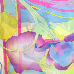 Leonard Paris Scarf Yellow Blue Pink Floral Design - Chiffon Silk Shawl