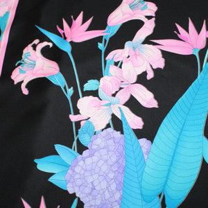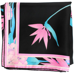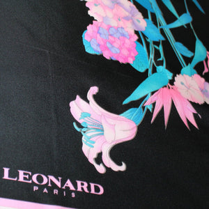 SALE - Authentic Leonard Paris scarf, black / pink / blue floral multi design, twill silk, hand rolled borders, made in Italy. Top quality: Genuine Leonard Paris scarf, stunning colors, women collection, luxury Italian style head scarf.