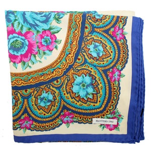 Category: 150-200, 2023spring, 2023summer, aqua, baroque, blue, extra large square, large square, mantero, other brands, scarf, silk, square, twill, woman