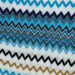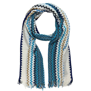 - SALE - Authentic Missoni scarf, shades of blue chevron design, extra long, soft viscose/ cotton fabrics, fringe, made in Italy. Genuine Missoni women scarves at outlet prices, quality brand name shawls made in Italy.