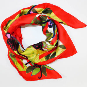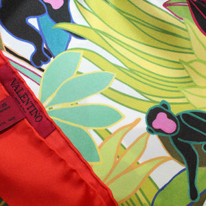 - FINAL SALE - Authentic Valentino scarf, green red monkey design with orange border, twill silk foulard, hand stitched border, made in Italy. Genuine Valentino women collection at sale prices.
