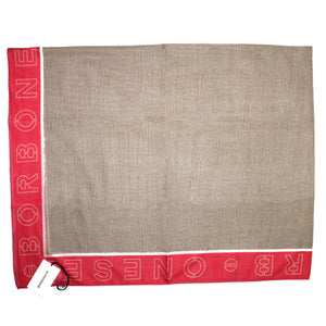 SALE - Genuine Borbonese scarf, beige eye of partridge design with pink logo border, light weight cotton, no fringe, made in Italy. Authentic Borbonese women designer scarves, Italian quality accessories at outlet prices.