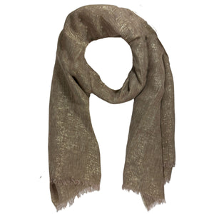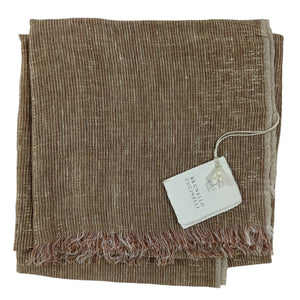 Luxury - Genuine Brunello Cucinelli scarf, extra long/ large, brown/ silver, slightly taupe, soft linen blend with little 'glitter' silver (metal) detail, luxury linen blend, short fringe, made in Italy. Authentic Brunello Cucinelli scarves and accessories at outlet prices.