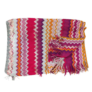 SALE: Authentic Missoni scarf, fresh colors, purple white pink and orange chevron design, 87" long, soft cotton/ viscose fabrics, fringe, made in Italy. Genuine Missoni scarves at outlet prices, women collection, quality designer shawls, made in Italy.