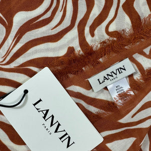 - FINAL SALE - Genuine Lanvin scarf, signature brown and white flowers design, soft cashmere modal, short eyelash fringe, made in Italy. Authentic Lanvin scarves, women collection accessories at outlet prices.