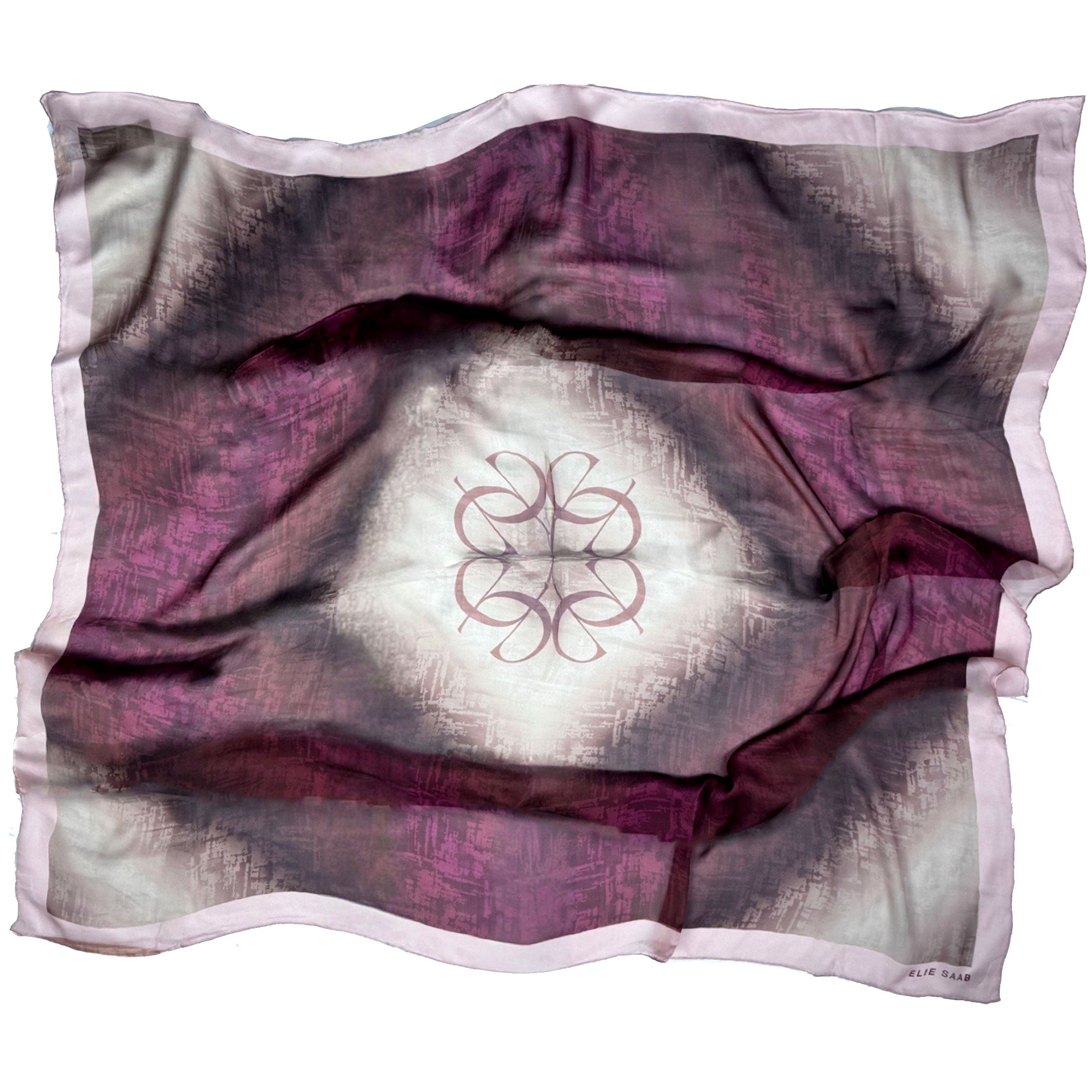 - clearance - Authentic Elie Saab scarf, signature design with logo in center, chiffon silk, extra large 55" square, made in Italy, hand stitched edges. Genuine Elie Saab collection, discount women designer scarves/ stola and shawls.