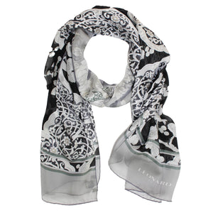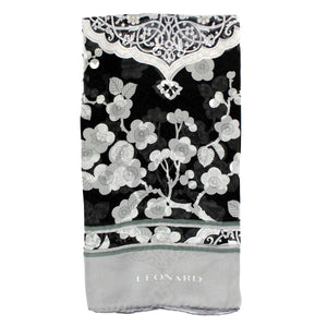 - SALE - Authentic Leonard scarf, black / gray floral,chiffon silk shawl, made in Italy, hand-stitched edges. Genuine Leonard Paris women scarf, stunning colors. Discount women designer scarves at outlet prices, luxury Italian designer shawls and scarves.