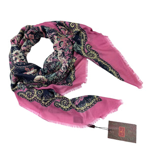Etro Scarf Pink Navy Floral Paisley - Extra Large Square Shawl