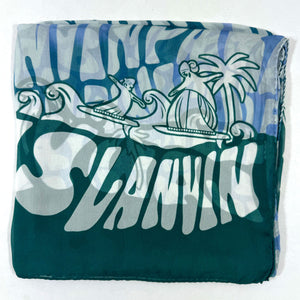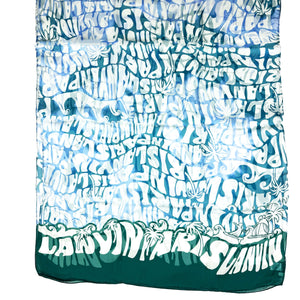 - BLACK FRIDAY SALE -Genuine Lanvin scarf, ocean green with blue logo Island (waves) design, lightweight silk, made in Italy. Authentic Lanvin scarves, women collection accessories at outlet prices.