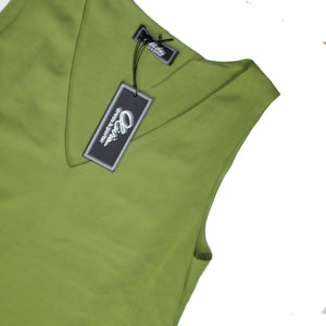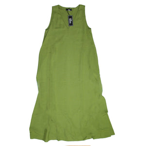 SALE - Genuine Olivia long dress, olive green, linen/ viscose, v-neck collar, sleeveless, side pockets, hand made in Italy. Shop luxury bikinis, swimwear and beachwear for women, Olivia Beachwear, at outlet prices.