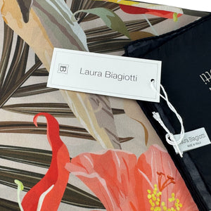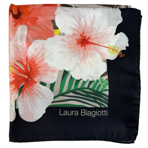 Laura Biagiotti Silk Scarf Black Gray Pink Floral - Square Foulard