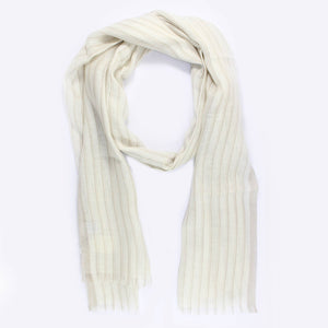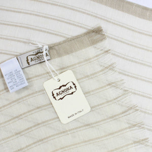 - FINAL SALE - Authentic Agnona scarf, beige / taupe stripes design, lightweight linen/ silk blend, short eyelash fringe, made in Italy. Genuine Agnona Scarves, women collection shawls and soft accessories at outlet prices.