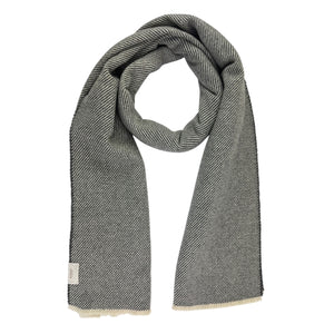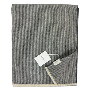 Luxury Cashmere: Authentic Agnona scarf, Charcoal Gray/ Light Gray striped design, short eyelash fringe, medium-heavy weight cashmere fabrics, no fringe, made in Italy. Authentic Agnona Scarves, women collection scarves and soft accessories at outlet prices.