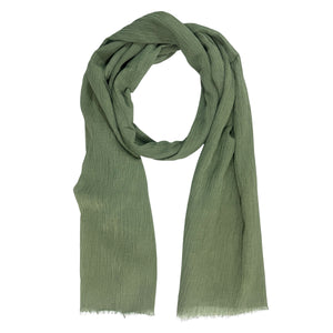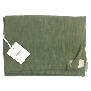- CLEARANCE - Authentic Agnona scarf, green, pleated light weight cotton-silk, short eyelash fringe, made in Italy. Genuine Agnona Scarves, women collection scarves and soft accessories at outlet prices.