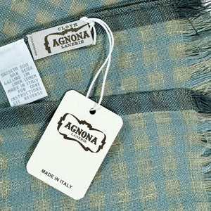 HUGE CLEARANCE - Authentic Agnona scarf, seafoam gray check, lightweight linen/ silk blend, short eyelash fringe, made in Italy. Authentic Agnona Scarves, women collection scarves and soft accessories at outlet prices.