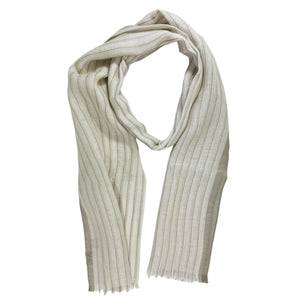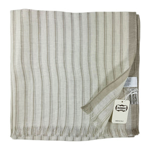 CLEARANCE - Authentic Agnona scarf, white / taupe stripes design, longer 83" length, lightweight linen/ silk blend shawl, short eyelash fringe, made in Italy. Genuine Agnona Scarves, women collection shawls and soft accessories at outlet prices.
