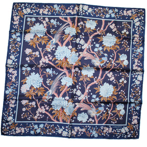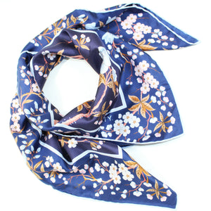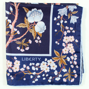 Category: 150-200, 2025spring, 2025summer, animal, blue, floral, large square, Liberty, navy, scarf, silk, square, twill, woman
