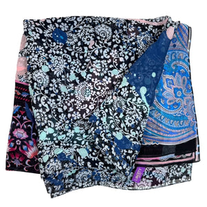 Genuine Liberty scarf, dark blue/ pink multi/ patch design, chiffon silk, extra large, no fringe, made in Italy. Authentic Liberty scarves, women collection accessories at outlet prices.