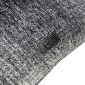 Luxury Cashmere: Authentic Agnona pillow, granite wool/ alpaca woven front and grantie gray pattern back in wool/silk, embroidered Agnona logo on reverse side, hidden zipper, made in Italy. Authentic Agnona Scarves, women collection scarves and home accessories. Shop Agnona Throws/ Pillows.