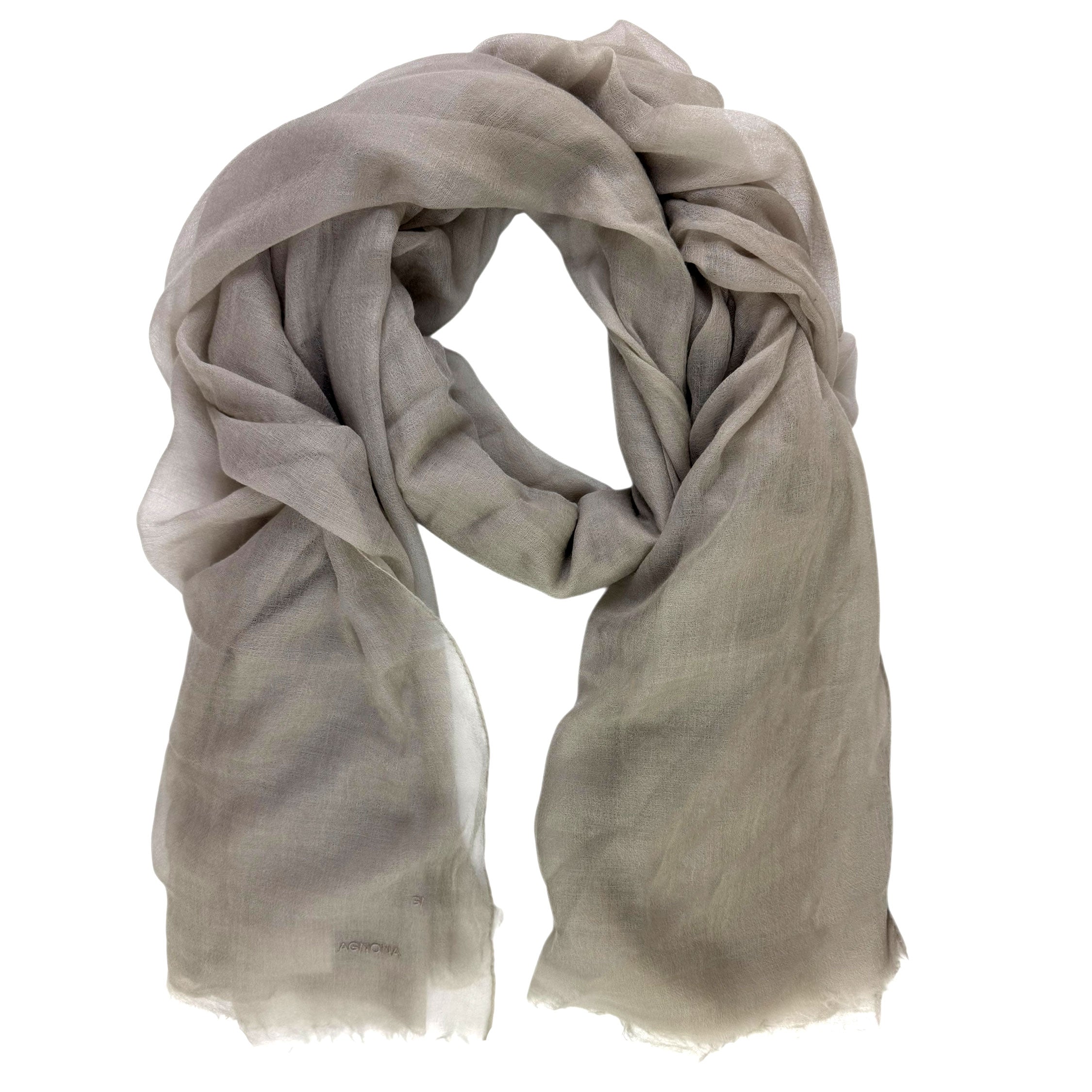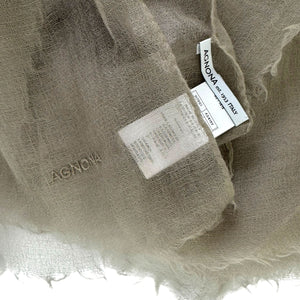 Delicate: Genuine Agnona scarf, taupe, light weight/ delicate cashmere, embroidered Agnona logo, extra large, Agnona logo embroidered, short eyelash fringe, made in Italy. Authentic Agnona Scarves, women collection at outlet prices.