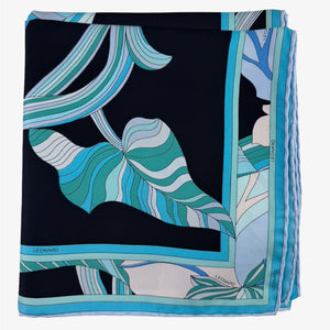 Leonard Paris Scarf Black Blue Green Floral - Twill Silk Square Foulard
