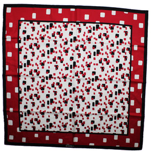 Reduced - Authentic Givenchy scarf with red / black / white geometric design, pink border, twill silk, made in Italy. Original Givenchy women collection soft accessories online at outlet prices.